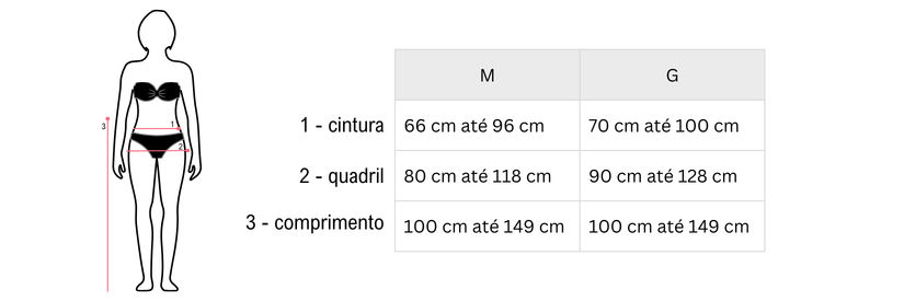 Tamanho G: Veste do 42 ao 44/46 (podendo vestir até mais; verifique a tabela abaixo)