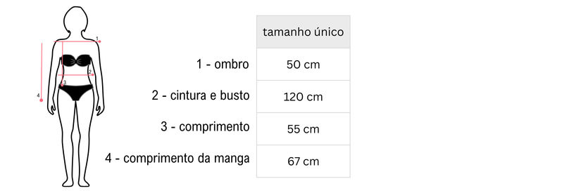 Peça confeccionada em amanho único, veste super bem do 36 ao 48.